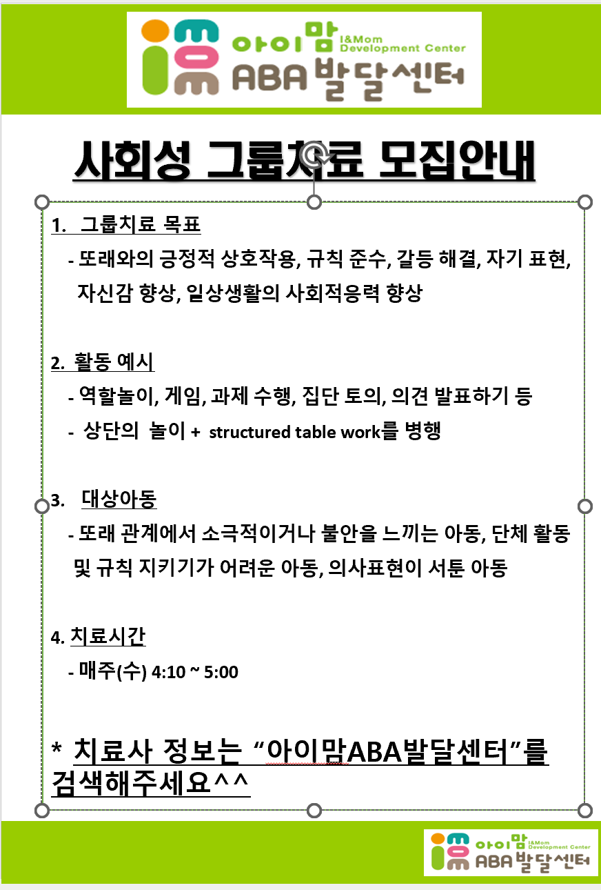 2026년 사회성 그룹치료 모집안내