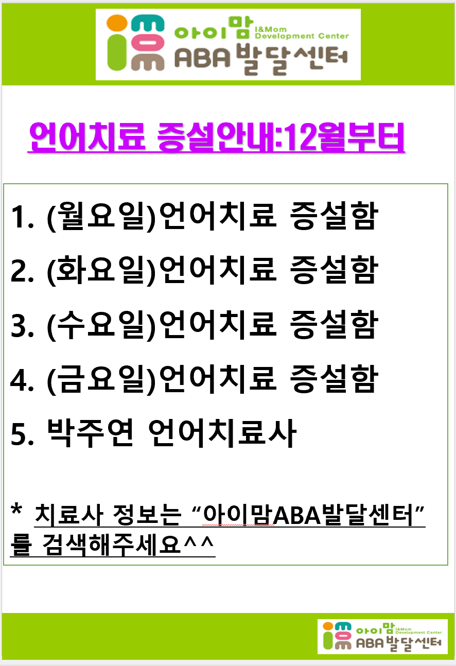 박주연 언어치료사 증설안내(12월부터)