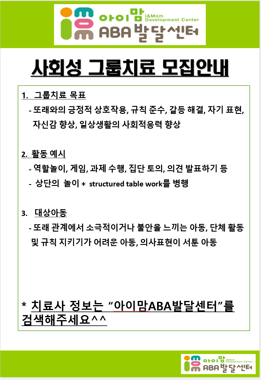 2026년 사회성 그룹치료 모집안내