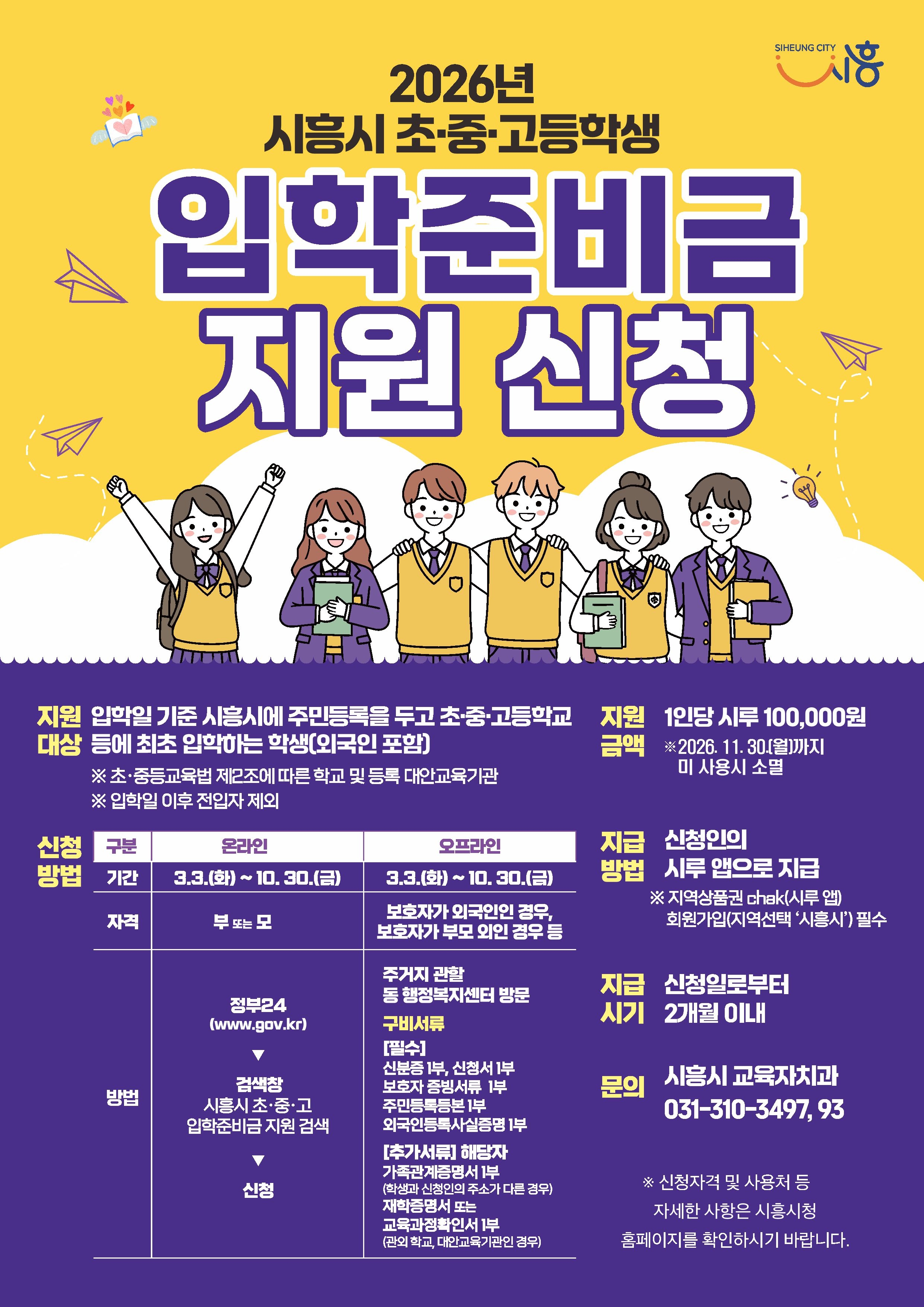 시흥시 (초,중,고) 입학준비금 지원신청
